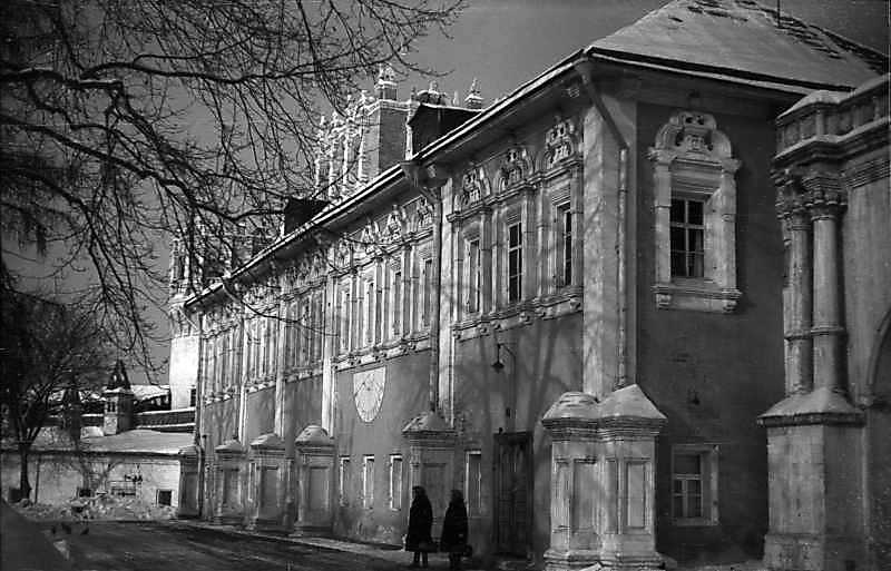 This two-storey building with a distinctive style casing of "Naryshkin barocco" adjoining the north wall. At the center of facade – large sunny hours. Right shows a fragment of the north gate.