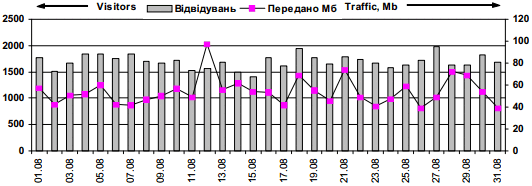 Statistical data in the report presented on the basis of web server and CMS Smereka statistics. Usage of Google analytics data noted separately.