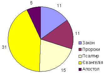 Ми бачимо, що з Ветхого заповіту наведено 37 цитат, а з Нового – 36; улюблена книга Ветхого заповіту – Псалтир (15 цитат), а Нового заповіту – Матфій (18, тобто половина всіх цитат).