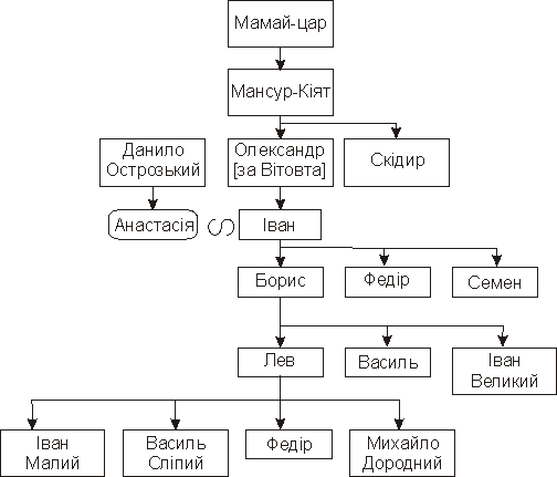 – відкинуто предків Олександра і його посвоячення із Острозькими;