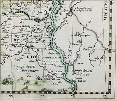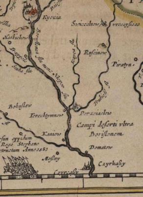 В цьому ж атласі вміщено і карту Дніпра від Черкас до гирла роботи того ж Т. Маковського. Я не знайшов її у добрій роздільності і тому наводжу її в копії з атласу Я. Янсона 1646 р. Характерною особливістю цієї карти було позначення Монастир не біля Терехтемирова, а далеко нижче за течією, на південь від гирла Тясмина.
