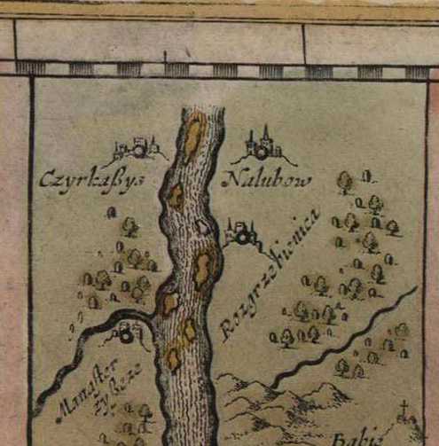 На цій карті напис «Монастир на горі» (Manaster zy berg) з відповідним рисунком вміщено нижче Черкас, на правому березі Тясмина при його впадінні в Дніпро. Ця інформація, безумовно, запозичена з карти Т.Маковського.