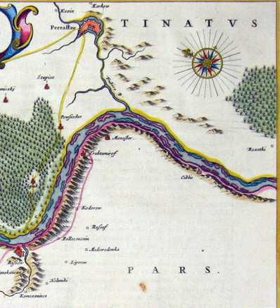 Фрагмент карти Дніпра Я.Янсона з помилковим позначенням монастиря