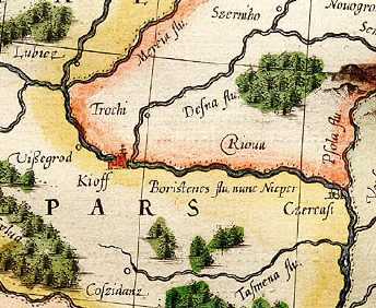 Фрагмент карти Таврії Г.Меркатора з позначенням Києва та Черкас