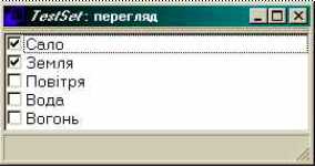 Множина. Тип призначено для множин, тобто наборів бінарних ознак, кожна з яких може бути встановленою або не встановленою. Максимальна кількість ознак в одному атрибуті – 64. Тексти ознак задаються під час створення метаатрибуту. Редактор реалізовано як окреме вікно.
