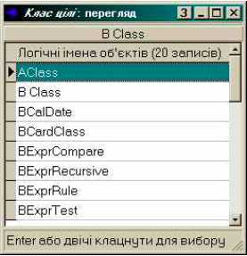 Картотека. Тип призначено для реалізації множинних атрибутів. Сама по собі картотека не містить ніяких даних і слугує тільки місцем збереження карток. Структура картки описується під час створення структури даних в деклараторі. В карту можуть входити атрибути будь-яких типів, в тому числі інші картотеки. Таким чином, об’єкт може мати атрибут типу картотека, в який вкладено іншу картотеку, і т.д. – глибина такого ієрархічного підпорядкування картотек не обмежена. Редактор реалізовано як окреме вікно, ієрархічно підпорядковане вікну, в якому знаходиться атрибут-картотека.