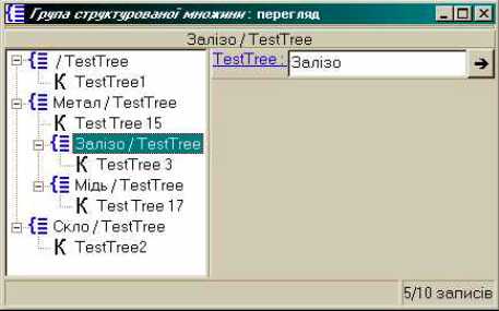 Малюнок 8. В редакторі структурованої множини виконано автоматичне групування за значенням ієрархічного переліку TestTree