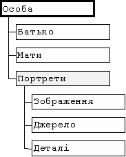 Особа – клас, який призначено для збереження інформації про осіб. Він є основою біографічної підсистеми нашої моделі. Атрибути Батько і Мати (тип даних – вказівник на екземпляр Особи) містять генеалогічну інформацію. Атрибут Портрети (тип даних – картотека) призначено для збереження різних портретних зображень особи. Картка має атрибути Зображення (тип даних – зображення), який містить власне візуальний образ (нагадаємо, що в “Археометриці” 2.7 атрибут типу зображення може містити також і фільмову інформацію, тобто відеофрагменти та звукові фрагменти; ці три джерела даних, здається, вичерпують усе, з чим може працювати біограф окрім текстової інформації). Атрибути Джерело та Деталі джерела є ідентичними з одноіменними атрибутами картотеки Імена. Оскільки даний клас не є абстрактним (тобто призначеним для створення екземплярів), ми подаємо приклад заповнення об’єкту даного типу в Додатку 1.