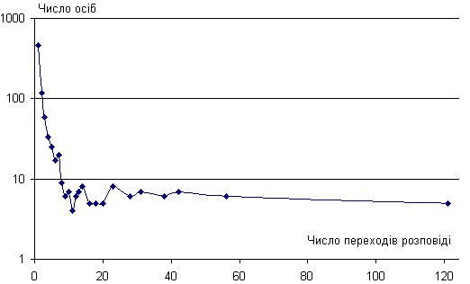 Малюнок 1. Розподіл числа осіб за числом переходів розповіді