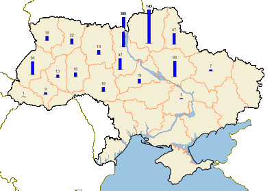 By grouping names by regions of modern Ukraine, we get the following map scheme: