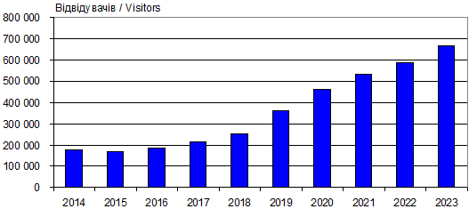 There are total 666 704 visitors during year