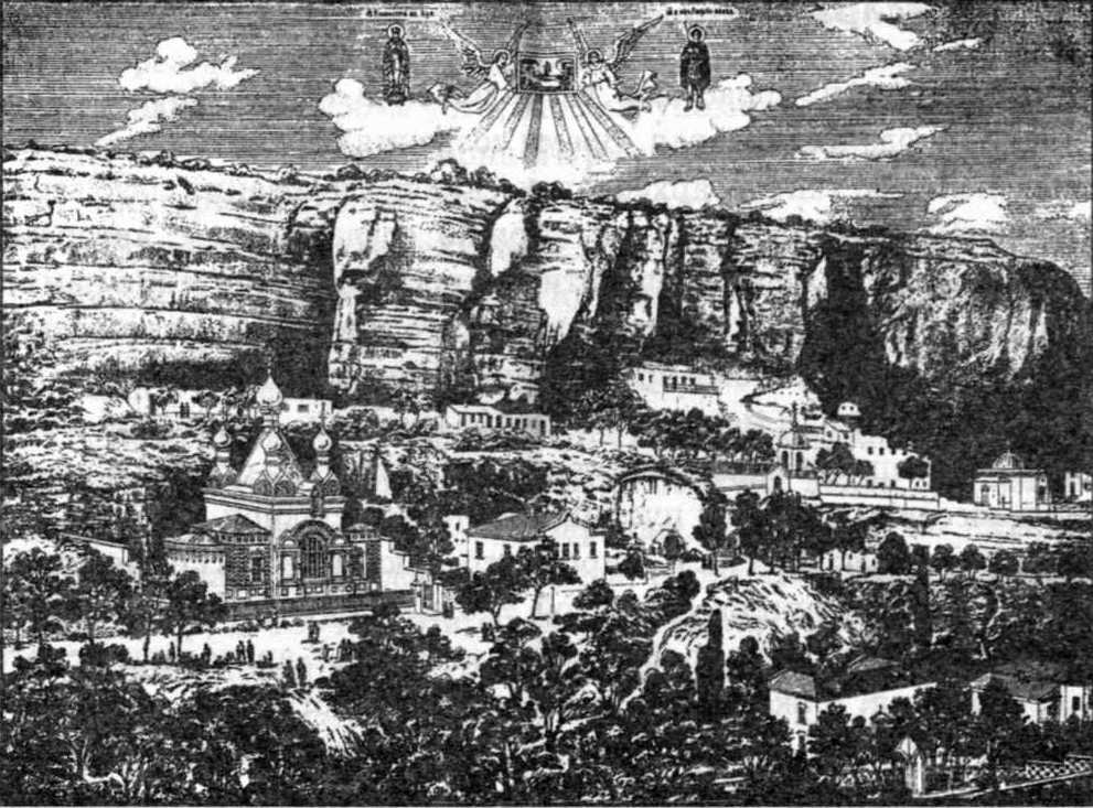 Панорама Успенского скита у Бахчисарая на хромолитографии 1901 г.