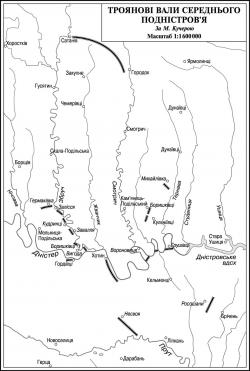 | Довгі вали Буджака. Карта підготована Д. Вортманом | Довгі вали Подністров’я. Карта підготована Д. Вортманом |