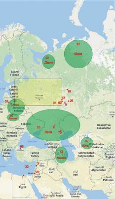 | Великий Новгород + Псков | 52 65 70 74 89 95 102 110 125 126 127 128 165 171 172 173 174 175 177 182 184 185 186 207 208 209 210 211 212 234 235 236 249 250 251 252 253 302 306 307 308 309 326 328 330 331 342 343 347 | 49 | 10 |