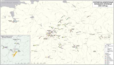 Картосхема розподілу назв Рогозького літописця за князівствами (креслення Дмитра Вормана)