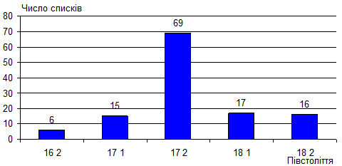 Дещо повчальне можна видобути із розподілу списків родоводів за часом переписування: