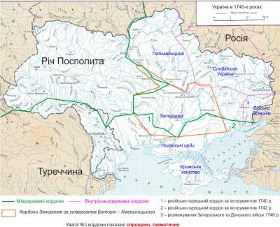 Так, 4 листопада 1740 р. було складено інструмент розмежування кордону між Богом та Дніпром (І. І. Неплюєвим та Мустафою-беєм Селихтаром Кятибом); 12 жовтня 1742 р. – аналогічний документ для ділянки від Кінських Вод до Азовського моря (кн. В. А. Репніним та Хаджи Ібрагімом Капиджи). Вільних, нічийних земель на території України не лишилось – для кожного квадратного кілометра була визначена його державна належність, зафіксована міждержавними угодами.
