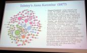 2, кластерний аналіз змісту реалістичного роману (на прикладі роману Л. Толстого «Анна Кареніна»). Це було тим більше цікаво, що зв’язки між персонажами визначались автоматично на підставі аналізу змісту (за одиницю зв’язку було узято одну розмову між персонажами). Мені це було більш-менш зрозуміло, бо я й сам бавився кластерним аналізом текстів літописів, але ж я не є ніяким гуманітарієм, і наскільки отаке цифрове, математичне літературознавство може прижитись, скажімо, в тому ж Інституті літератури НАНУ – велике запитання.
