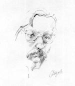 Тоді один з присутніх на занятті накреслив мій портрет і подарував цей шкіц мені. Там навіть його підпис добре видно, тільки я не тямлю його розібрати. Мені цей портрет дуже подобається і весь час стоїть у мене за склом.